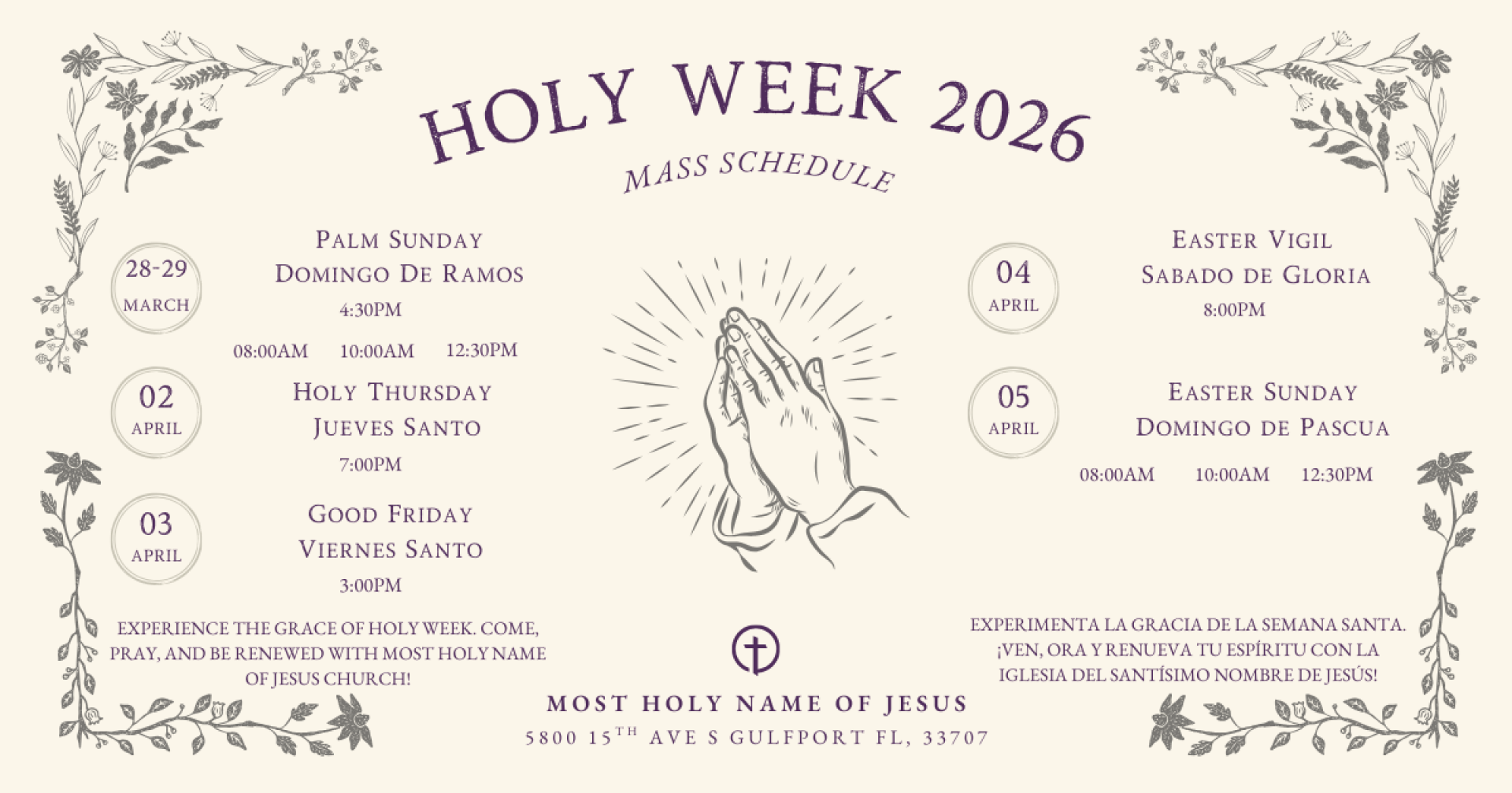 Vigil Mass: 4:30 pm (English)